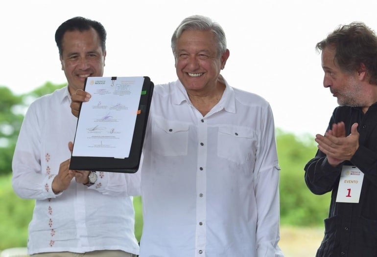 El presidente Andrés Manuel López Obrador inició la gira de trabajo del fin de semana en Martínez de la Torre, Veracruz, donde supervisó la construcción de la Autopista Cardel – Poza Rica. “Vengo a dar mi aval, a decirle a los pobladores de las comunidades de los ejidos, de los municipios, que tienen la preocupación de que la carretera los afecte, vengo a decirles que vamos a ayudar en todo como aquí se ha dicho para que en vez de salir perjudicados se beneficien”, expresó.